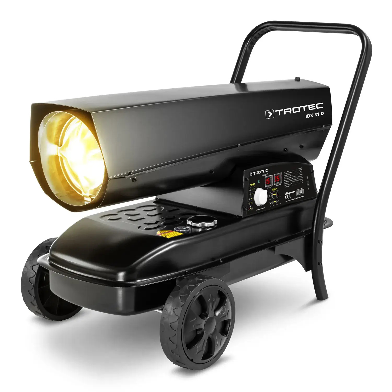 Tänu praktilisele veokonstruktsioonile koos integreeritud 38-liitrise kütusepaagiga, on silmatorkav must diiselpuhur alati valmis kiireks asukohavahetuseks. Hõlpsaks temperatuuri reguleerimiseks on diiselpuhuril IDX 31 D astmeline muudetav termostaat digitaalse reaalväärtuse näidikuga.