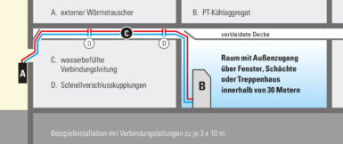 Paigaldatav ühenduskomplekt hõlmab nii toiteühendust ja kondensaadi voolikut kui ka jahutusvedeliku toite- ja tagasivoolutoru, mis koosneb ainult glükooliga lisatud veest, mille taset saab reguleerida hooldussõbralikul viisil, kasutades kliimaseadmesse integreeritud mahutit. Tänu sellele keskkonnasõbralikule ja kulutõhusale konstruktsioonile ei saa PT 15000 S ühendamisel ja lahtiühendamisel kunagi külmutusainet kaduda.