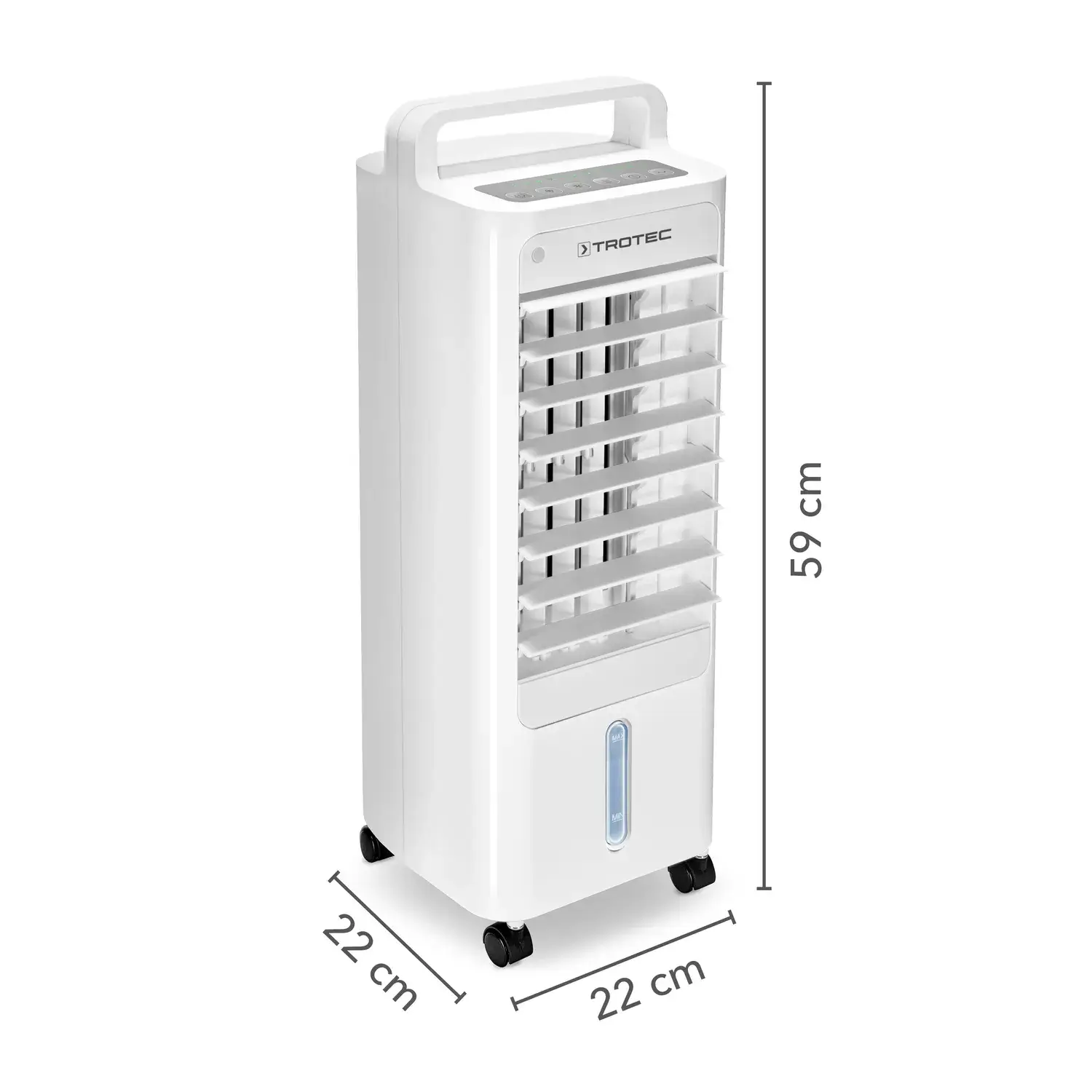 Vaatamata kompaktsetele mõõtmetele ühendab kolm-ühes õhujahuti Trotec PAE 12 elegantses korpuses arvukalt mugavusfunktsioone: