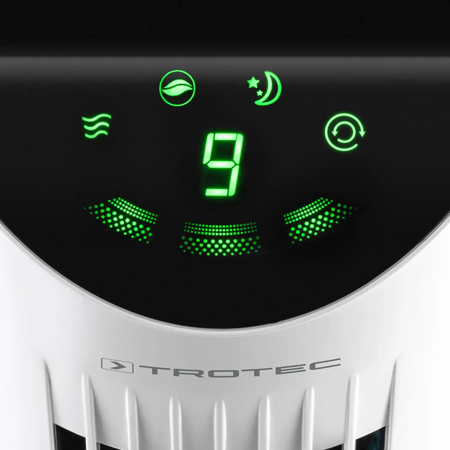 Kõiki seadistusi ja funktsioone saab teha kas LED-juhtpaneelil või mugavalt ja lihtsalt kaugjuhtimispuldi abil. Õhujahuti Trotec PAE 29 9-tunnine taimer võimaldab teil seadme välja lülitada pärast eelprogrammeeritud tundide arvu. Nii saate näiteks kontoris tagada, et õhujahuti lülitub tööpäeva lõpus automaatselt välja.