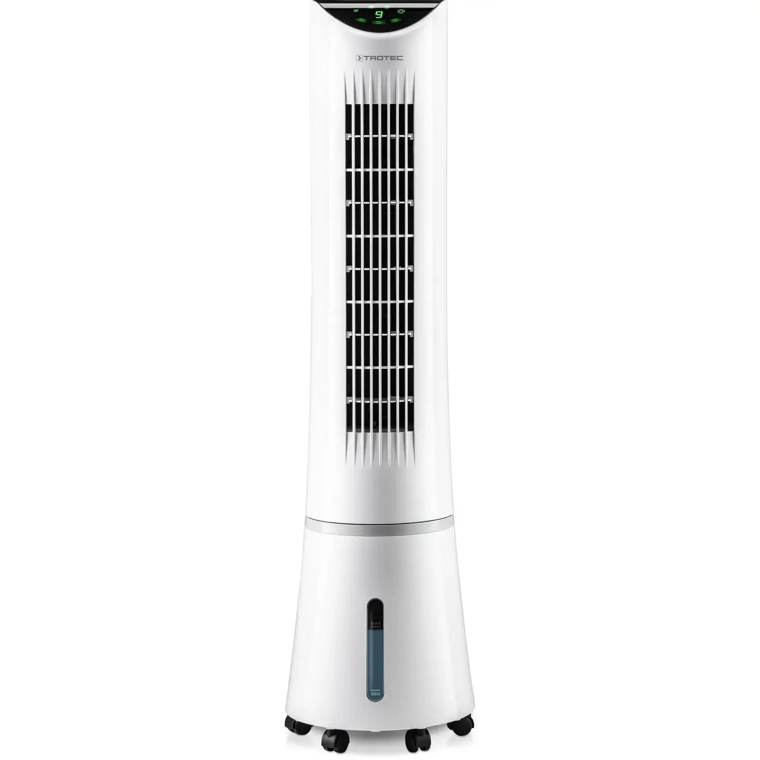 Õhujahutiga Trotec PAE 29 naudite värske ventilaatorituule ja loomuliku aurustumisjahutuse kombinatsiooni. Õhuke ja elegantne õhujahuti ei paku teile mitte ainult integreeritud veepaaki, vaid ka tornventilaatori stiilset välimust ja jõudlust. Olgu see siis kontoris või kodus – Trotec PAE 29 lisab igale keskkonnale kaasaegse hõngu ja tagab meeldiva jahutuse.