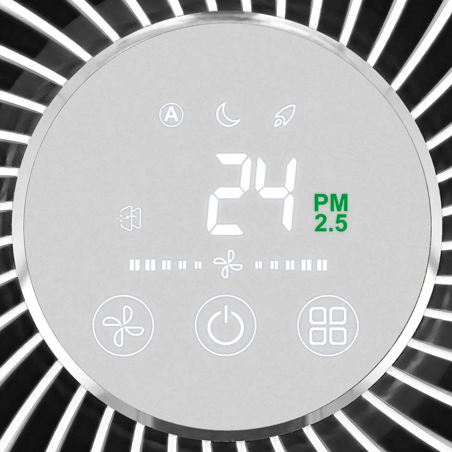 Spiraalikujulised labad pole mitte ainult atraktiivne disainiaktsent, vaid tugevdavad veelgi õhu turbulentsi ja seega ka puhta õhu jaotust ruumis. Kolmeastmeline PM2.5 värviindikaator teavitab teid reaalajas teid ümbritseva ruumi õhu kvaliteedist.